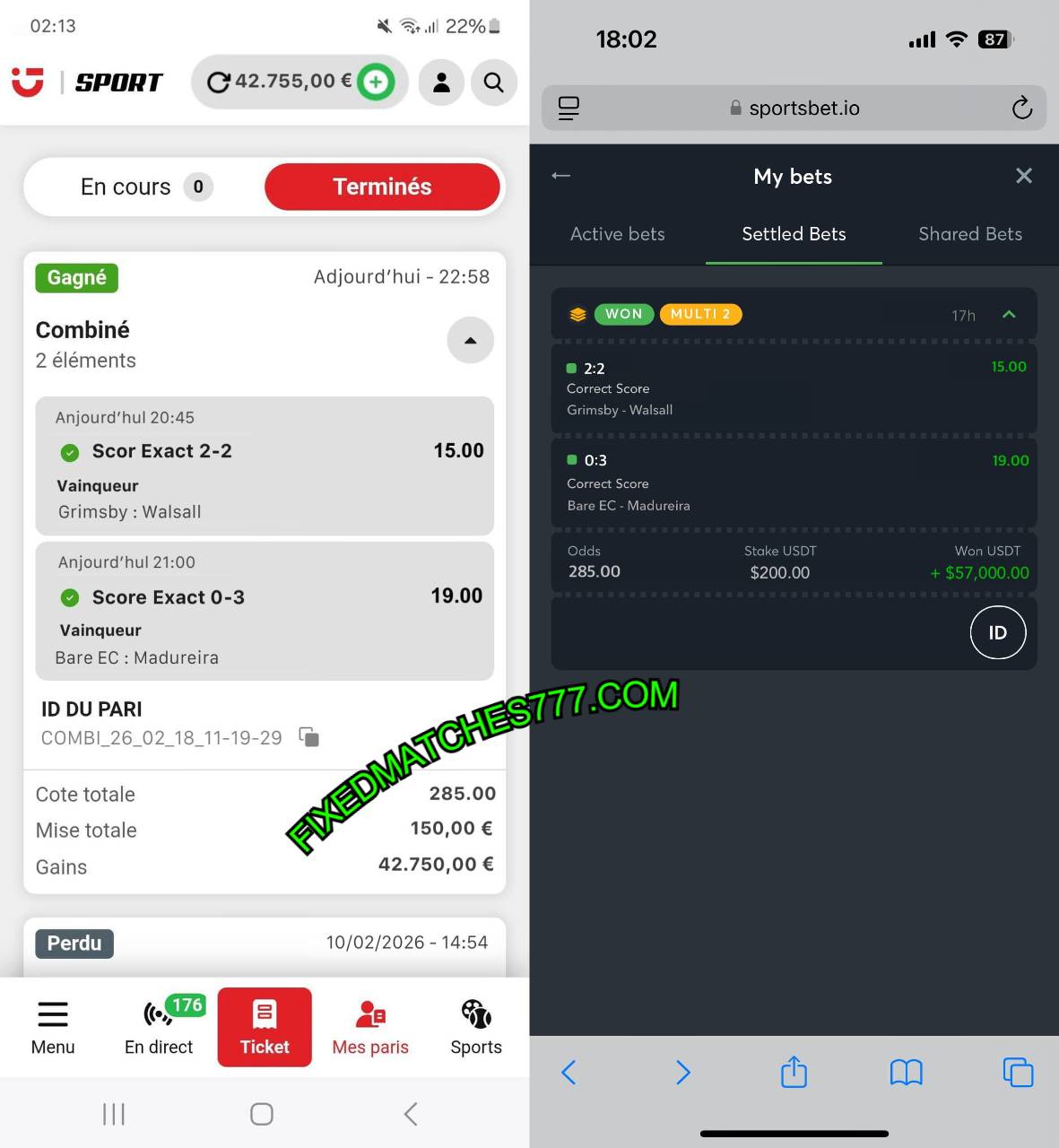| BETTING OFFER: | CORRECT SCORE – FIXED MATCHES | HALFTIME FULLTIME – FIXED MATCHES |