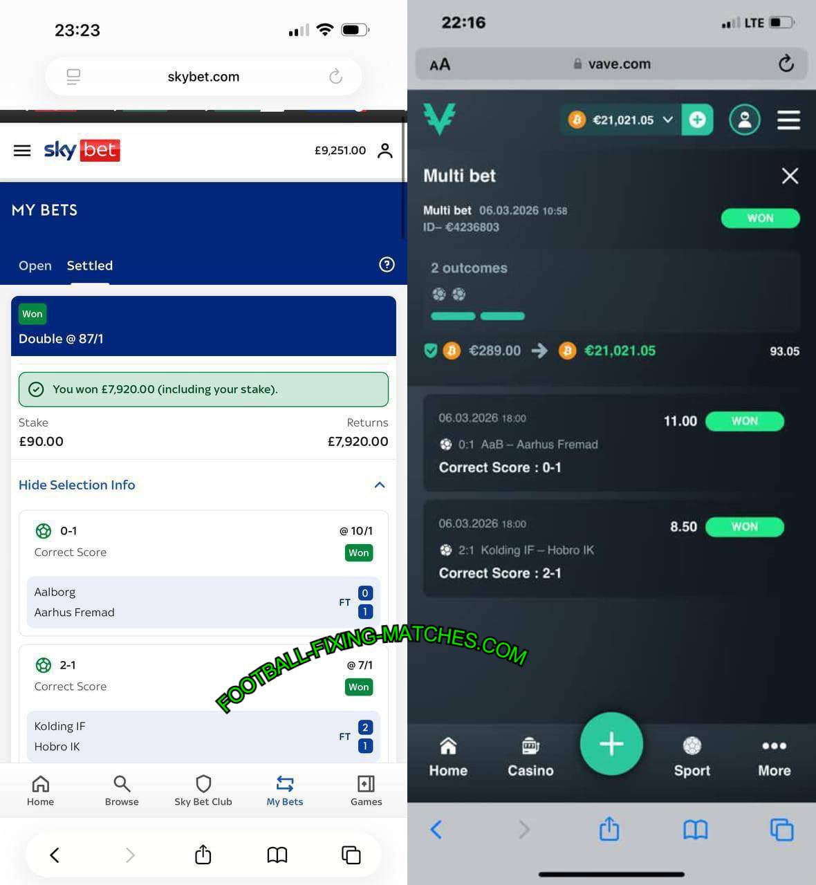 CORRECT SCORE – FIXED MATCHES