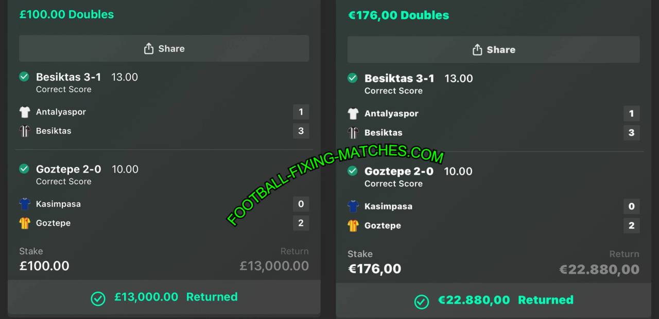 TIP: 2 CORRECT SCORE FIXED MATCHES