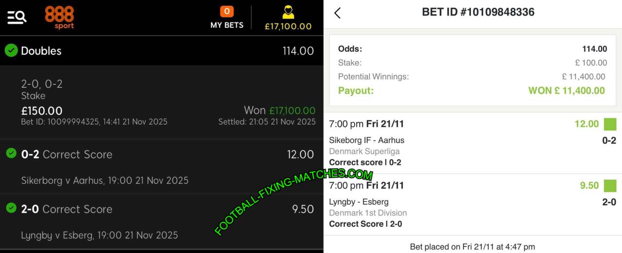 TIP: 2 CORRECT SCORE FIXED MATCHES