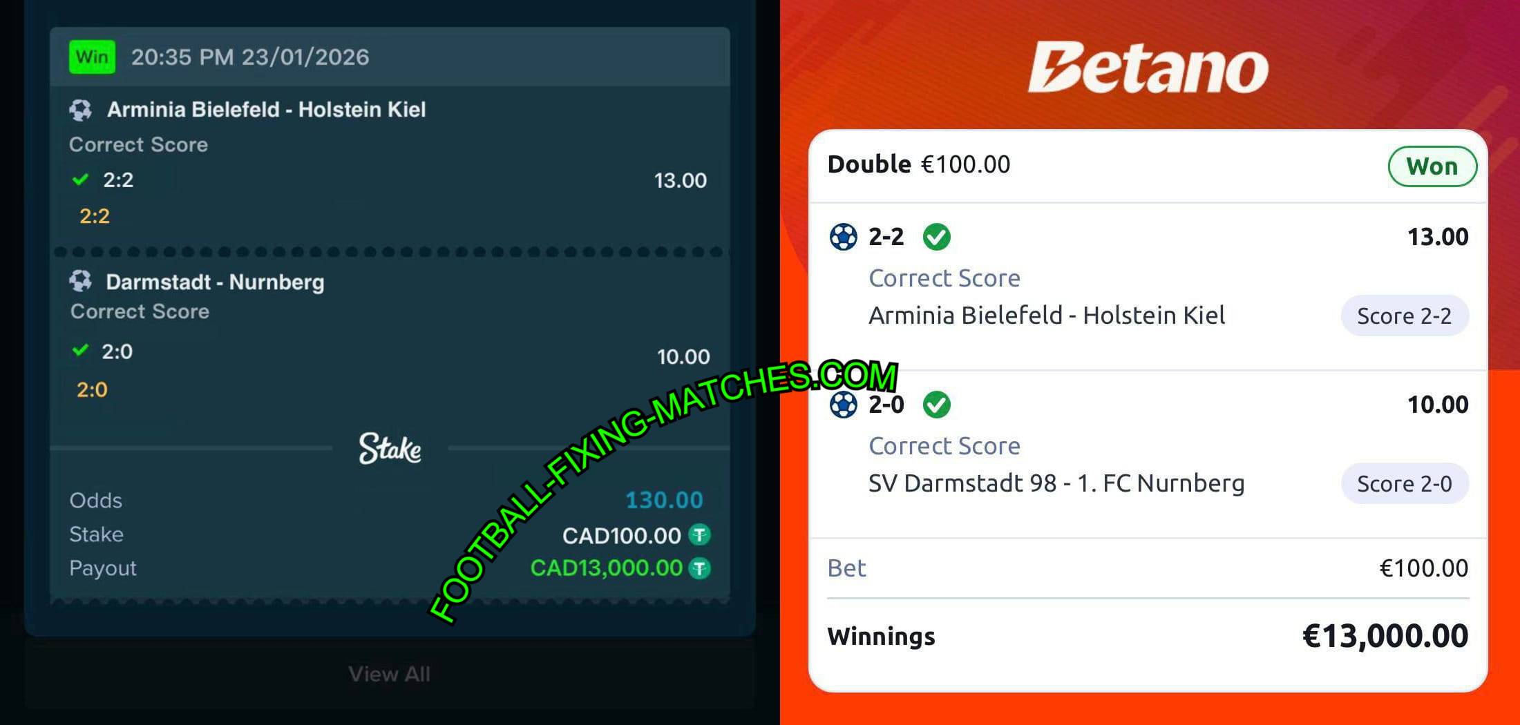 | Arminia Bielefeld vs Holstein Kiel | 2:2 (CS) | 13.00 | FT: 2:2 WIN |